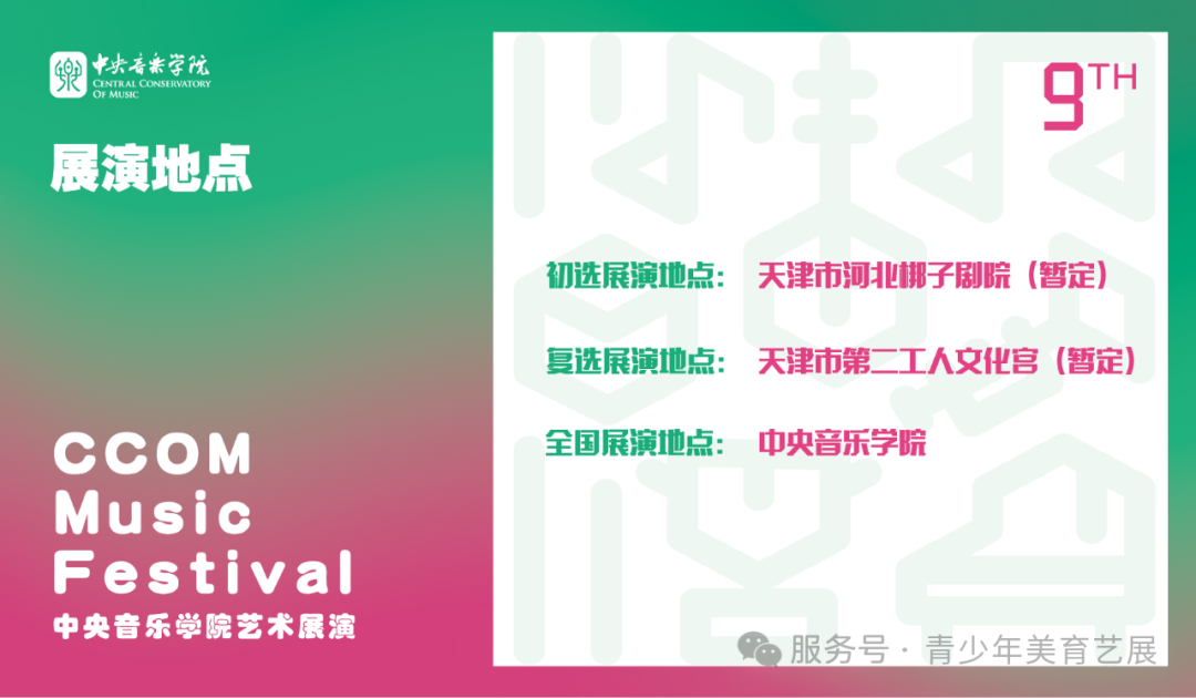 【重要通知】第九届中央音乐学院艺术展演天津地区报名火热进行!