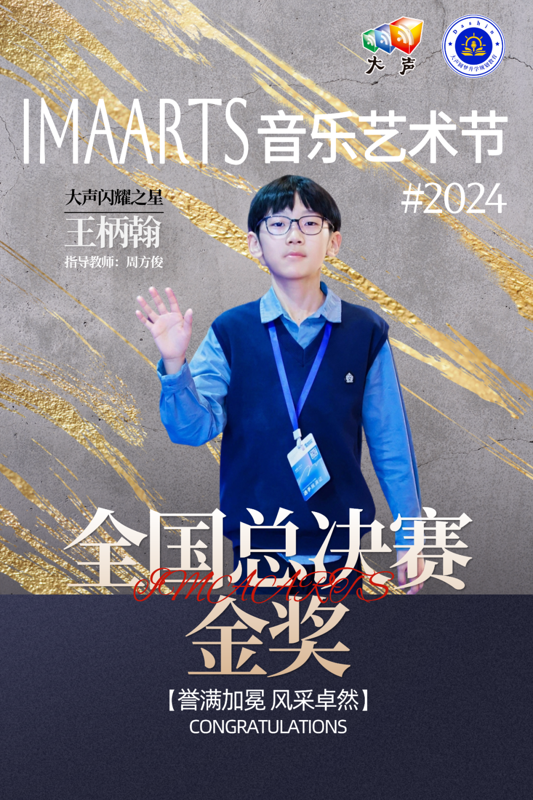 【荣誉时刻】恭喜王柄翰同学获得2024IMAARTS音乐艺术节全国总决赛金奖