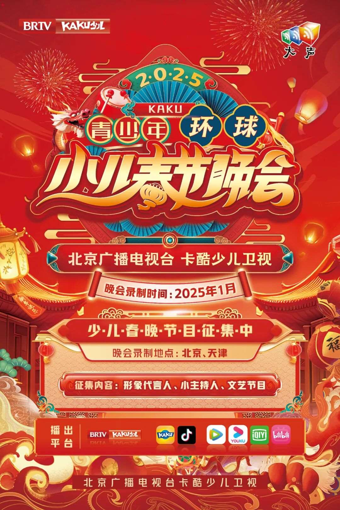北京广播电视台卡酷少儿卫视春晚也将开启招募。