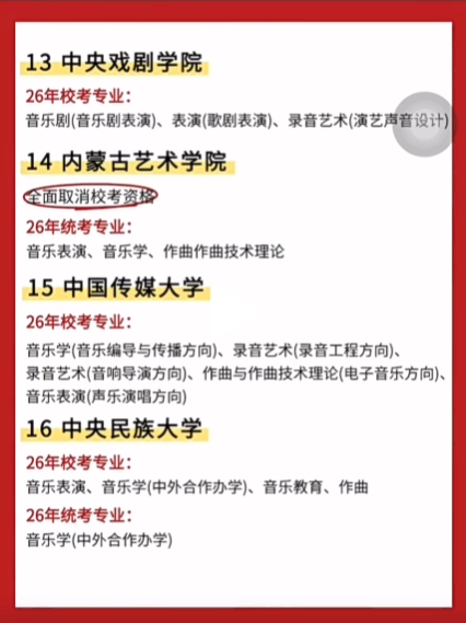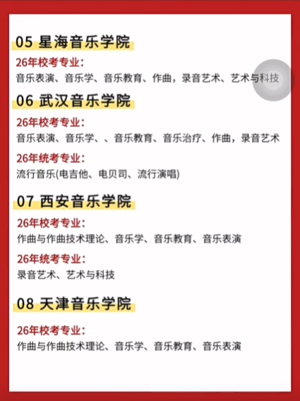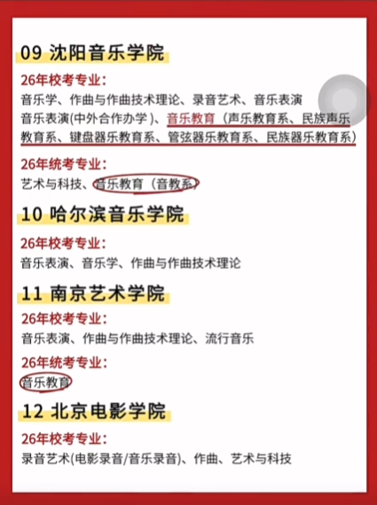 【艺考相关】2026年音乐类各校考院校及专业最新统计