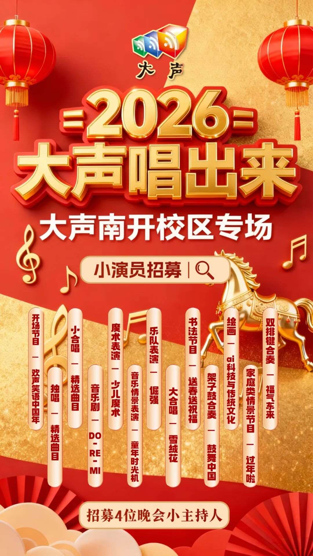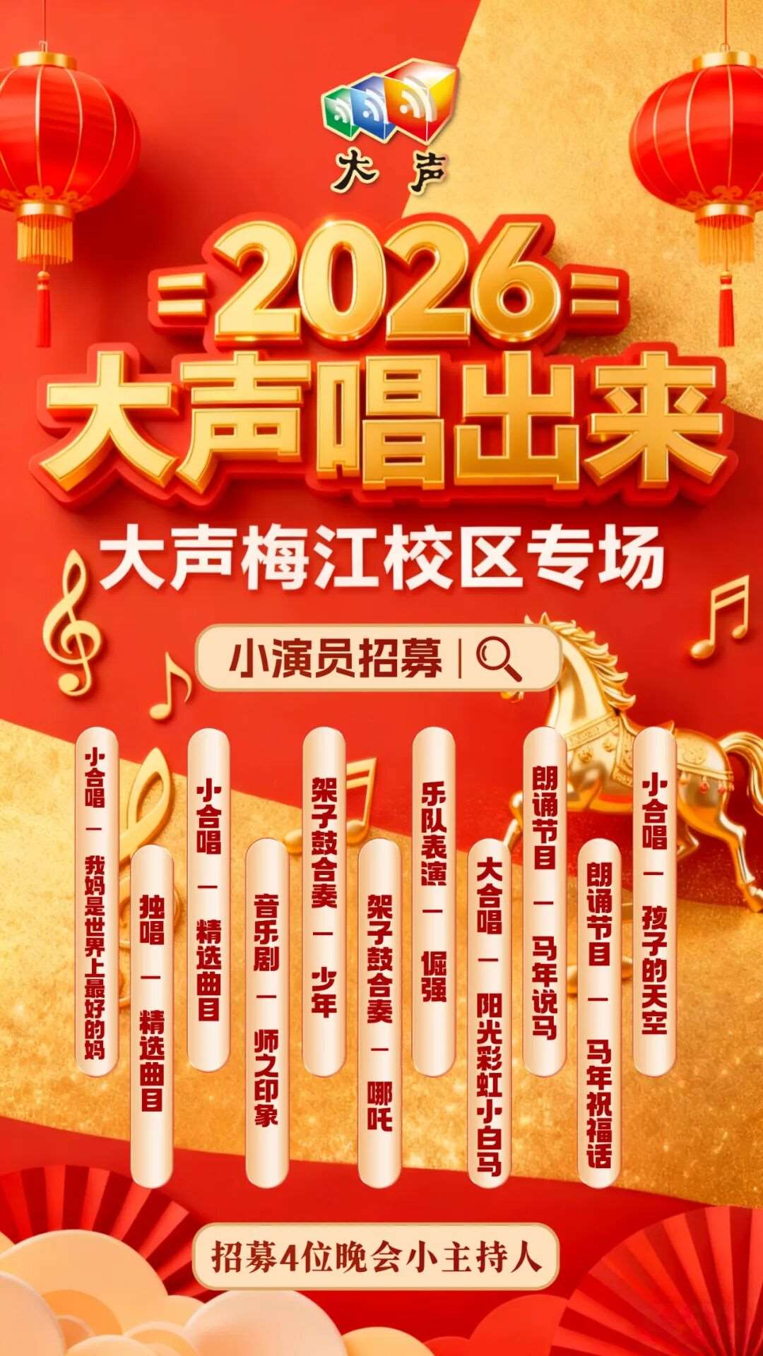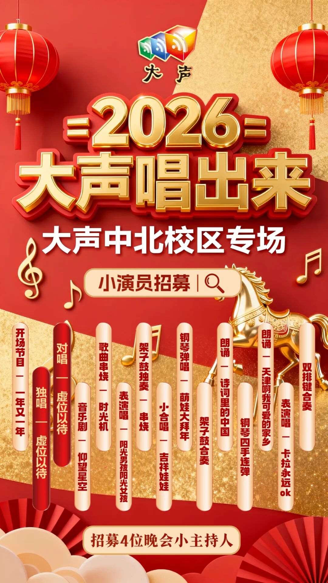 【演出招募】四校同频·音浪冲霄 | “大声唱出来”马年巨献,现在缺一个你!