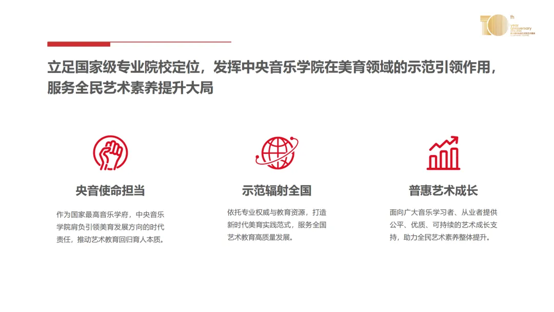 权威主办:由中央音乐学院(教育部直属211高校)主办,是国内由专业音乐院校发起的同类活动,具有官方认证的权威性。评审团队:评委由中央音乐学院教授、各大音乐院校专家及国内外知名艺术家组成,确保评审的专业性、公正性和指导的精准性。广泛的社会认可:总展演证书可作为艺术深造的重要参考,部分优秀参展者后续进入中央音乐学院等国内外学校深造。证书体系包含“社会艺术实践证书”,契合综合素质评价需求。